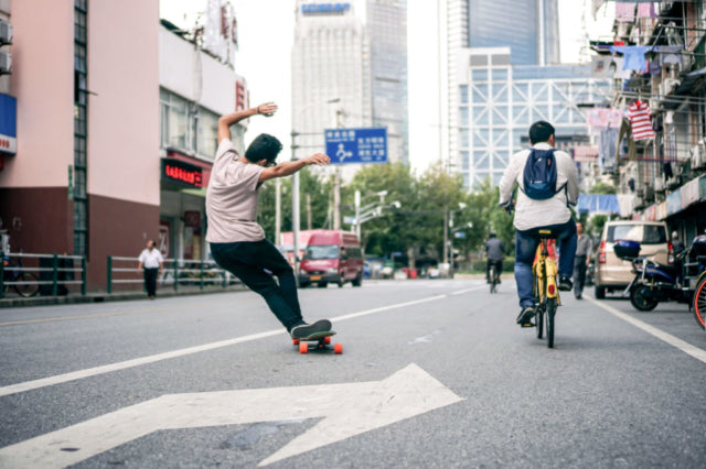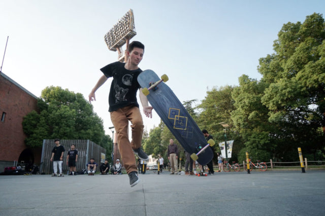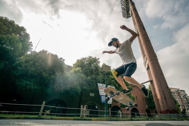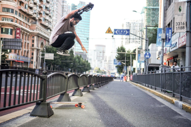 The days following the SYCLD event were spent skating with locals at the Longboard Space skate shop, filming together, and exploring the city. We quickly found out that skating in Shanghai can be tricky. Wherever we went there was a security guard that shooed us away in a foreign language. Although we didn’t understand what they said we got the message. We were able to get some shots, but had to take a bit more incognito approach, quietly making our way to each spot, getting the shot and disappearing before we were caught.