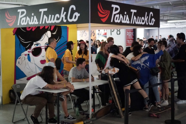 The following two days were dedicated to the main event. We arrived early the first morning and were shocked by the number of people waiting to get in inside SYCLD. Squeezing through the throngs of skaters, we made it to our booth and were immediately bombarded by riders asking for our autographs. It was a bit overwhelming but made us feel like total rock stars.